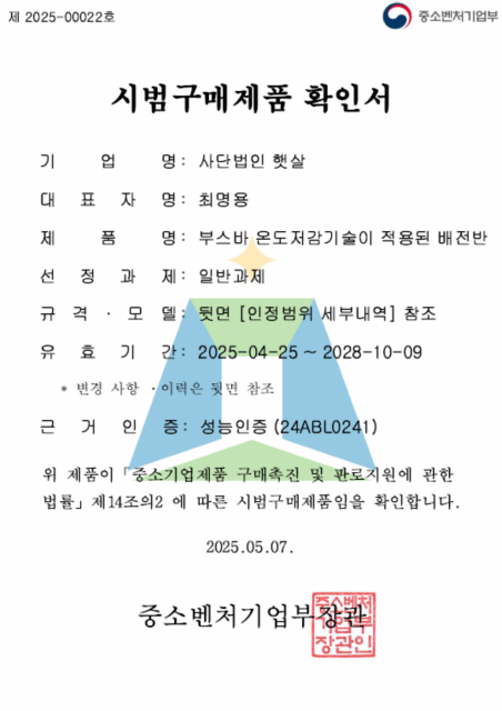 시범구매(배전반) 부스바 온도저감기술이 적용된 배전반