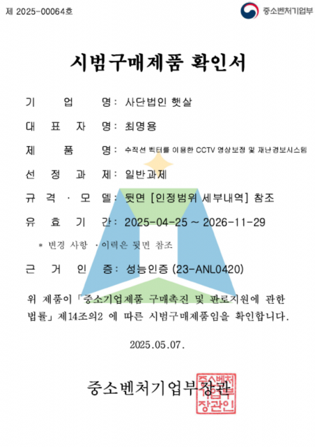 시범구매(영상감시장치) 수직선 벡터를 이용한 CCTV 영상보정 및 재난경보시스템